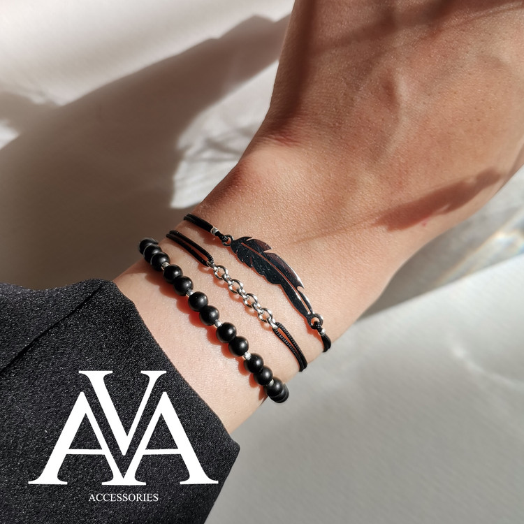 زیبا و با کیفیت پلاک و زنجیر استیل سیلور رنگ ثابت مناسب مهمونی.دورهمی و روزمره سنگ اونیکس مشکی سایز کوچک اندازه مچ تون رو با متر اندازه بگیرید و در قسمت یاداشت سفارشتون برامون بنویسید