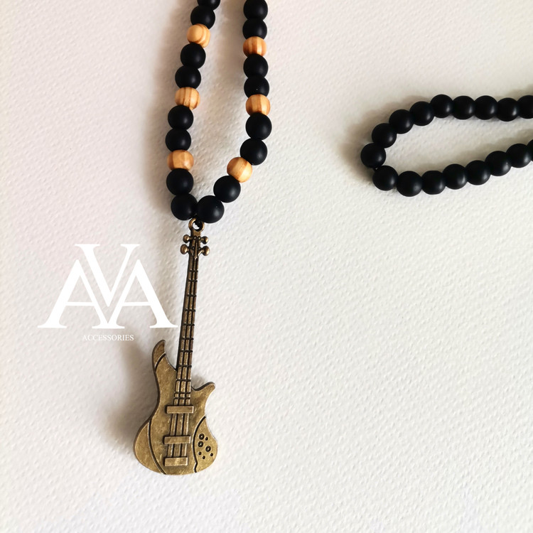گردنبند مهره ای با آویز گیتار